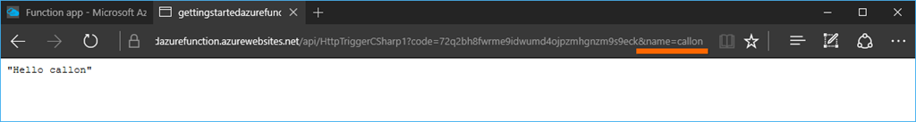 Alternatively you can also test the function by browsing to the URL to trigger the function. In this case I’ll navigate to the URL provided and the pass in the parameter name of “callon” to the query string like so.