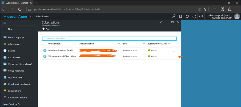 You will then see a list of Azure subscriptions. Select the subscription you wish to manage.