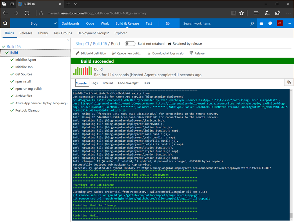 I wont go into detail for each of these build tasks as their pretty straight forward, but after I had everything setup and tested, I looked at the clock and it was under 15 min from start to finish. That is something I could never have done in our existing on premise build infrastructure and it now looks like I have my backup solution.