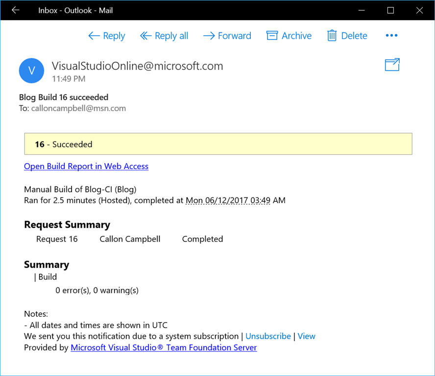 One of the nice things about using the hosted agent in VSTS is that it’s located in Azure and its a service that is managed by the Azure team. This means I spend more time focusing on developing my applications and less time worrying about managing the associated build infrastructure and what happens if a server goes down, performing backups, restores and that all hands on deck feeling when your infrastructure goes down at the worse possible time.