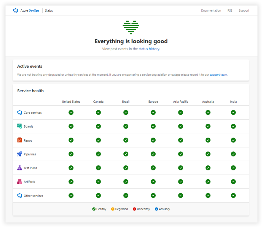 Last week Microsoft introduced the Azure DevOps Service status portal which provides real-time insights into the current health of Azure DevOps regional feature status and provides additional details on specific events either current or historical.