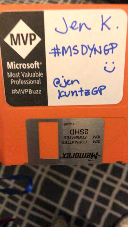 In the evening there was a MVP social dinner. The name tags for the event were a neat idea, 1.44” floppy disks on a lanyard. I wonder what rock those disks were dug up from? I’m sure I have a box of these somewhere in my basement “tech” museum.