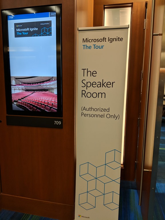 Day 1 of the conference was our talk on Azure DevOps. After getting my badge I met up with my co-presenters Ehsan and Arlan in the speaker room. This is a relatively quiet place to get away from the crowd and do some preparation or just relax. The food here was great too!