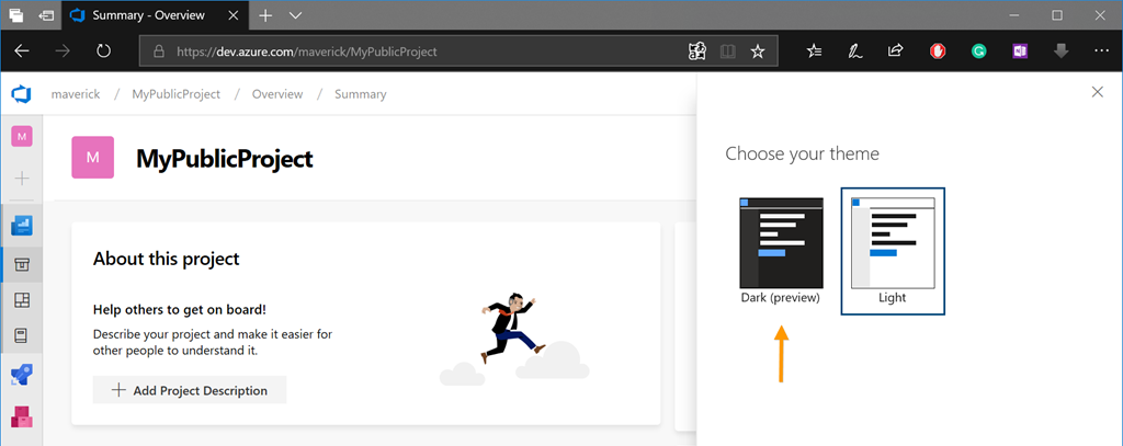 This week Azure DevOps finally rolled out one of their most requested feature, a dark theme. I use dark theme for just about any app that supports it, so this is a welcome addition to Azure DevOps. Keep in mind that this is just a preview and is still being refined.