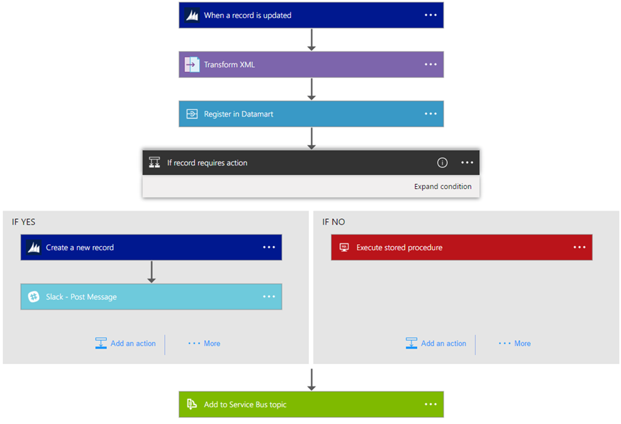 At the time of this post there are over 200 connectors available out of the box. Connectors reduce integration challenges and enable you to quickly and easily connect apps, data and devices anywhere.
