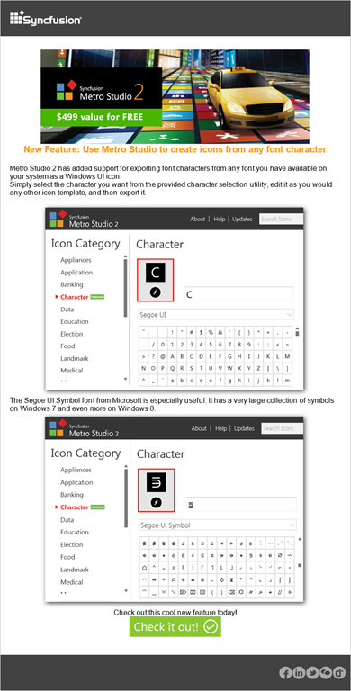 Today I got an email from Syncfusion about the ability to create icons from any font character. This is awesome stuff and I just wanted to share this with you.
